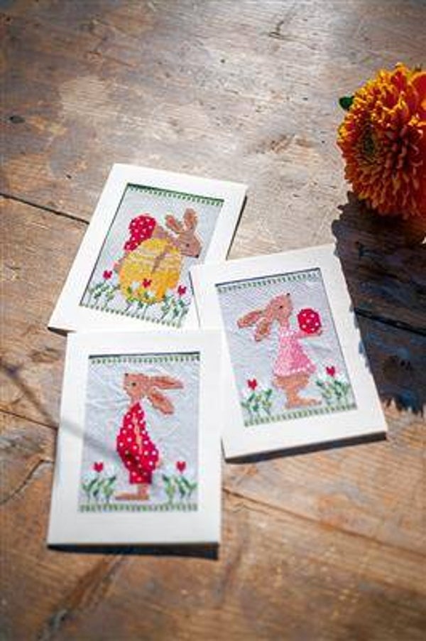 WENSKAART KIT PAASKONIJNEN IN TULPENTUIN SET VAN 3