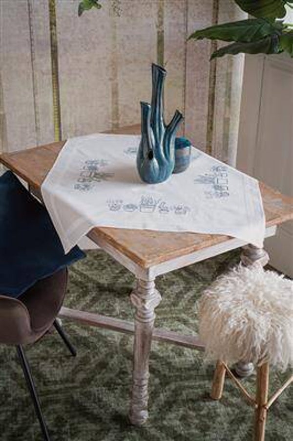Bedrukt tafelkleed met ingeweven boord,